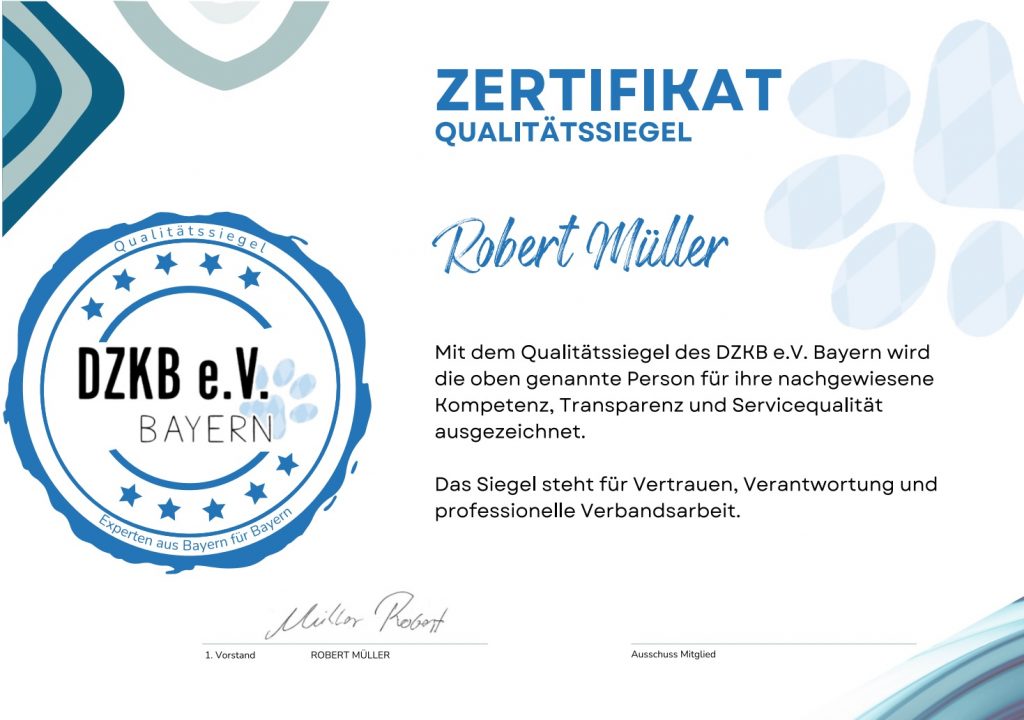 Geprüfter und zugelassener Hundetrainer nach § 11 für die Ausbildung von Hunden und die gewerbsmäßige Anleitung des Tierhalters zur Hundeausbildung